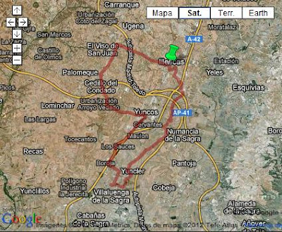 La ruta hacia Illescas es la siguiente, habrá que hacerla con mejor tiempo.