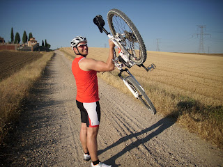 20 días después de la caída… la vuelta a la bici se veía necesario, pues como ya le dije a Luis hace tiempo, en la operación bikini me ha pillado el toro ¡otra vez!, y quiero unos cuadraditos de esos que están tan de moda en la playa...