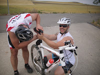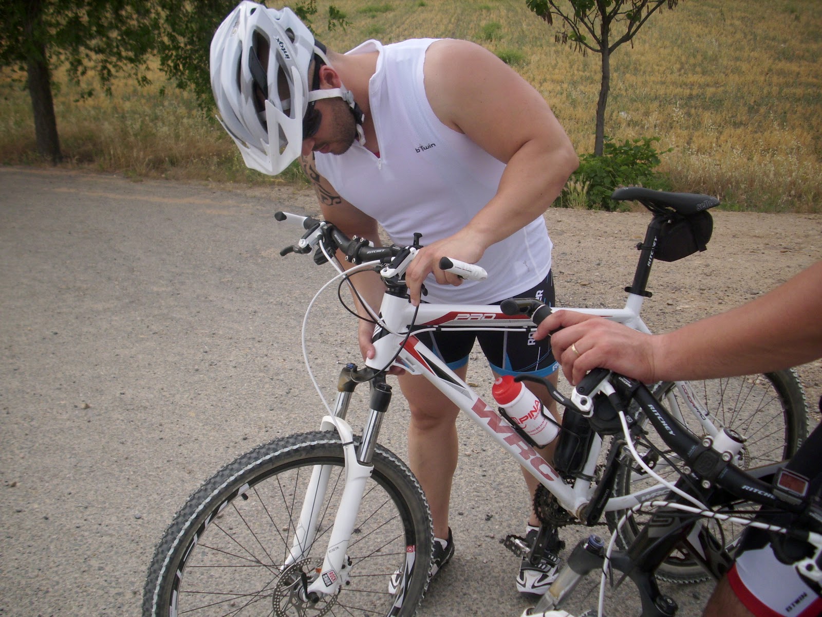 El paso por Numancia, Yuncler y Villaluenga fue fugaz. Al salir de Villaluenga primer imprevisto, la suspensión de Rincón no suena nada bien, no le habíamos dado mucha importancia pero el ruido fue a más y hubo que parar; No se pudo hacer mucho así que el mecánico tendrá que hacerse cargo el Lunes, Javi también se quejaba del sillín y es que lo llevaba mirando al cielo. Todo este tiempo parados fue la excusa perfecta para que Damián pidiera mas ritmo.