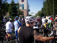 El ambiente es espectacular, hay unos 200 participantes, llegados desde poblaciones como Yuncler, Griñón, Parla, Yuncos, Illescas...Da gusto ver a grupos bastante numerosos perfectamente uniformados...nosotros parecemos el ejército de Pancho Villa (blogger toma nota).