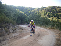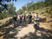 En la ascensión José, Manuel y "El Bombero" se destacan; En el cruce que nos deriva a la trialera esperamos para hacer grupo pero José se despista y tira para arriba. Manuel va en su busca, el resto esperamos decidiendo al fin bajar y esperarlos camino de Sangrila.