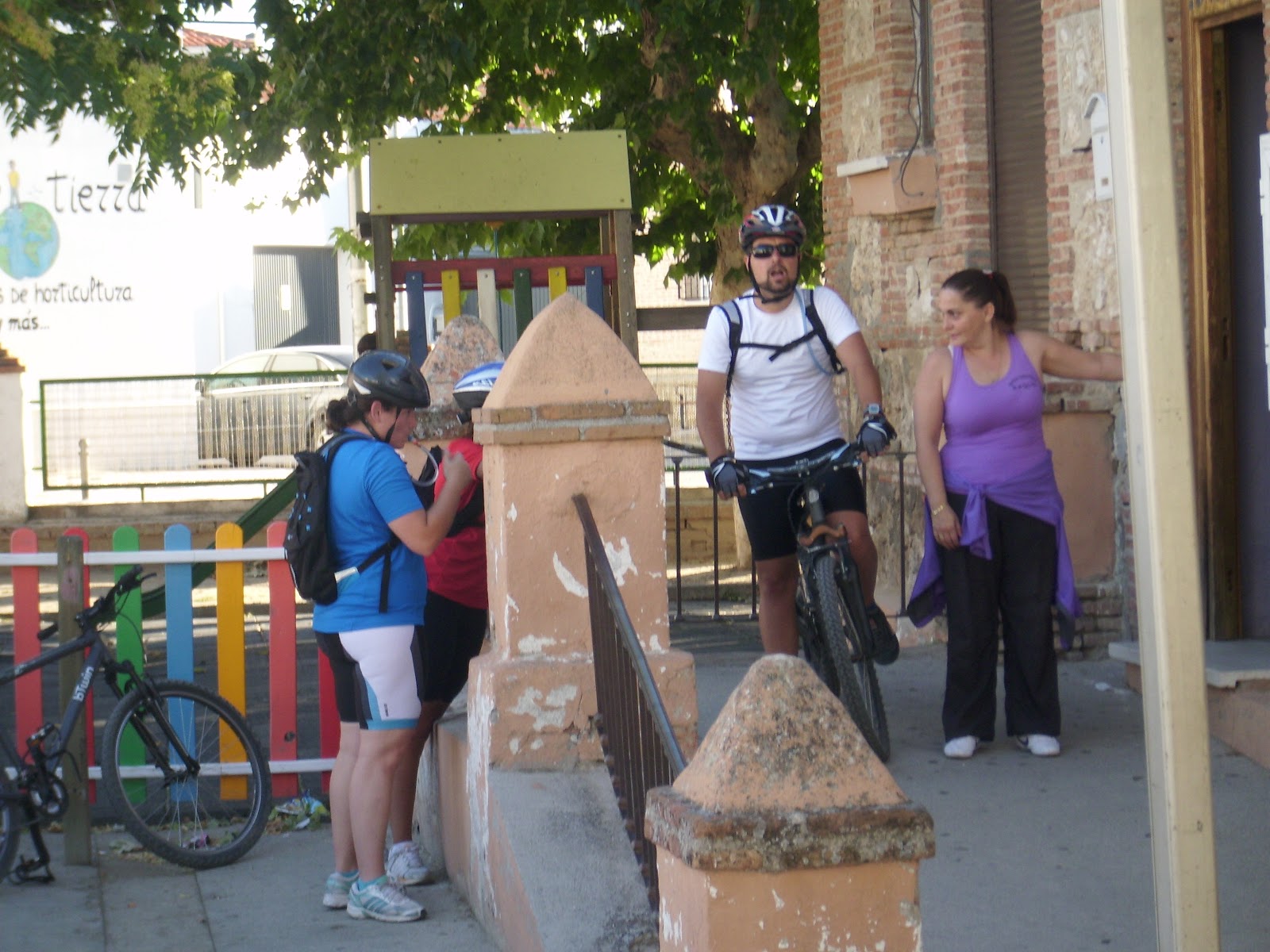 Recuperados del susto de la caída bordeamos Palomeque y ponemos rumbo a la urbanización Castillo de Olmos, situada a los pies de la Atalaya de la Torre. Maroto pregunta a los residentes acerca del acceso directo al Castillo (Desde estas líneas damos las gracias a los vecinos y a José en particular por su desinteresada ayuda en pos de conseguir el objetivo de la ruta)