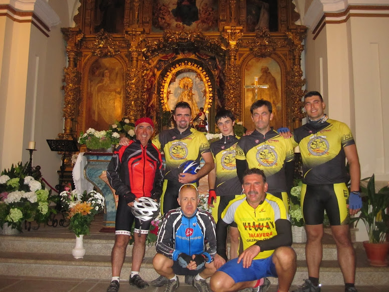 Ya en Chilla nos hacemos fotos con La Virgen, la iglesia está a oscuras y las luces sólo se encienden con un donativo ¡No llevamos ni 20 céntimos!