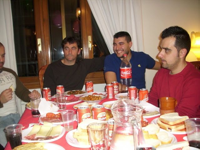 Tras dar cuenta del "arroz amarillo" y una merecida siesta, otra vez manos a la obra, no para ajustar las monturas sino para preparar la merienda/cena (Tortillas de Patata, Magro, Queso...) Ya que Damián, Maroto y Morillo venían de camino para hacer noche en Candeleda.