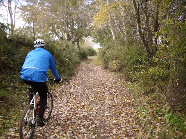 Recorremos el Tajo por su orilla Este durante varios kilómetros que todavía no pesan en las piernas. Atravesamos varias fincas y bordeamos una ganadería de toros bravos, "¡Mira como se giran! estos son bravos, tira, no hagas fotos que están muy cerca" recomienda Javi, no me lo dice dos veces y la cámara no sale de la chaqueta.