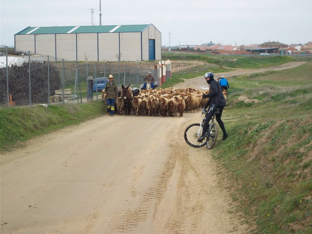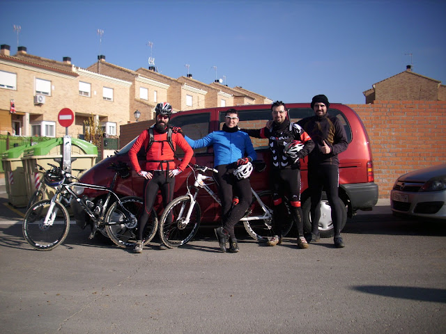 Un par de taponazos cinegéticos próximos aceleran automáticamente nuestra cadencia hasta Palomeque. Luís se pone en cabeza para guiarnos por el camino asfaltado del mismo nombre, que nos saca a la Fortaleza de Olmos, donde comenzamos a perder cota bruscamente ante la proximidad del valle del Guadarrama. En el vado del río, nos encontramos con un mercadillo local donde no perdemos de vista los plátanos de uno de los puestos. Con poca comida y menos dinero tiramos de improvisación ya que nadie había estudiado la ruta con detenimiento.