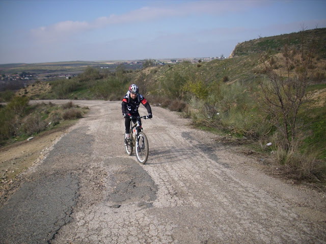 Salimos pedaleando de Illescas por el camino de El Viso. Rincón viene con hambre de kilómetros y asume el rol de liebre sin pegas. Un despiste nos obliga a cruzar parte del casco urbano y recorrer la carretera rumbo sur hasta escasos metros de Cedillo, donde nuevamente cogemos tierra en un viraje de noventa grados a poniente.