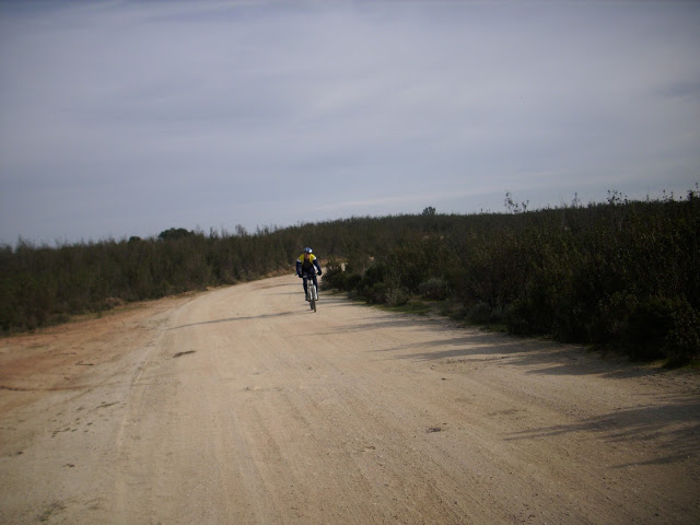 El terreno pica hacia arriba entre jaras y pinos; Al cruzar la carretera del Raso comprendo porqué Luis tenía tantas ganas de salir... quería demostrarme su fuerza de cara al circuito de Toledo (Mucha suerte a todos los sagreños). Le engaño en algún cruce ¡¡y así logro ganarle algún metro!!!