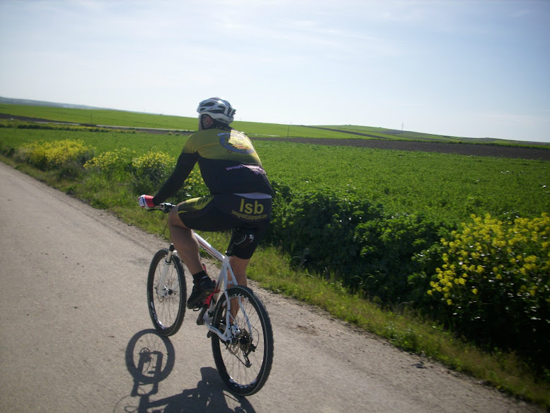 La ausencia de viento unido a una temperatura más que agradable llenan de bikers los caminos, no pasan más de 5 minutos sin que nos crucemos con algún que otro compañero de fatigas. Calentamos las piernas hasta Cabañas, la primavera inunda el terreno de allí a Bargas. ¡¡La Sagra Baja pintada de verde!! Entre olivas y charlas nos plantamos a orillas de Bargas sin enterarnos. 17 Km disfrutando del sol.
