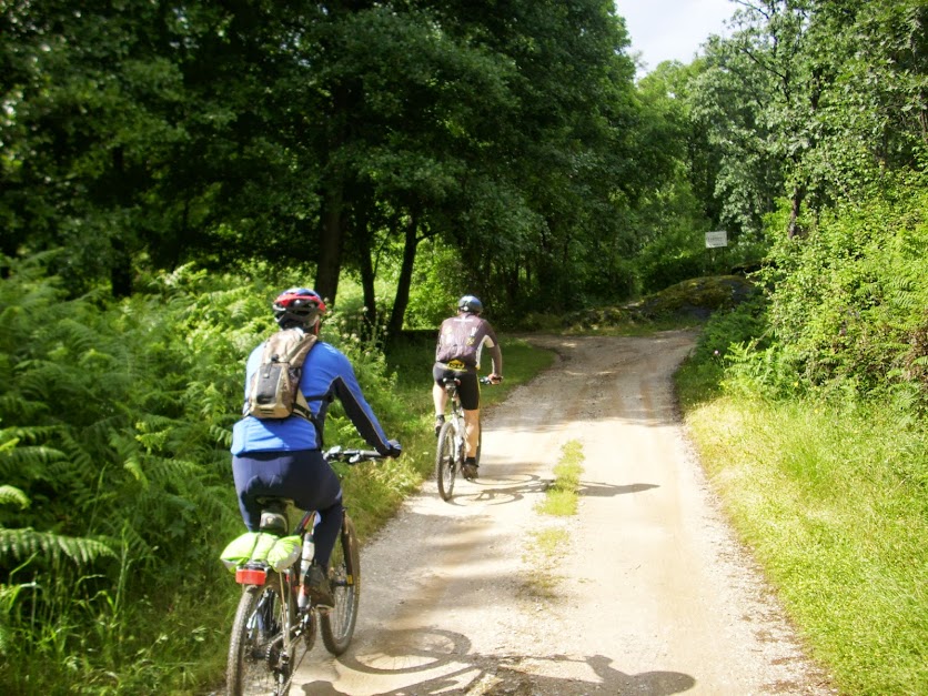 Al llegar al río Muelas dejamos la carretera y empezamos a subir, en la subida tenemos que cambiar la rueda de Jesús pues va bastante baja de aire. Seguimos subiendo hasta el cruce de sangrila y ante la negativa de Luisete de coger prestadas unas cerezas, que ya se veían pintonas en unos cerezos al lado del camino, tenemos que conformarnos con el membrillo que hace su tía Montse y las nueces que llevaba él.