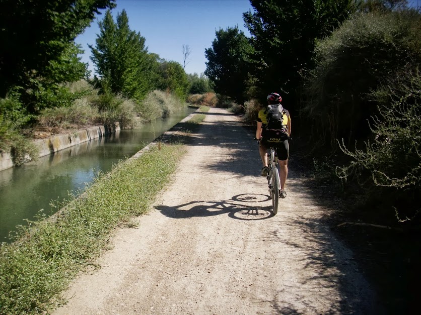 El Domingo se presentaba perfecto para la aventura, a primera hora no tendríamos problemas con el calor, pero sí la jornada se alargaba demasiado acabaríamos pasándolo mal. Para evitar el sol del medio día y los kilómetros de más, nos acercamos en coche hasta Añover. El descenso hasta el río es fugaz, sobretodo para @Alfredo, que utiliza su nuevo plato grande para hacerme apretar los dientes.