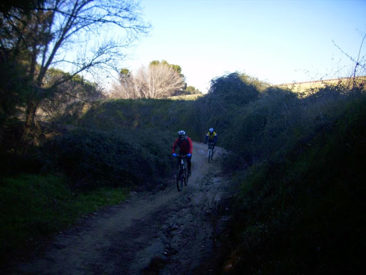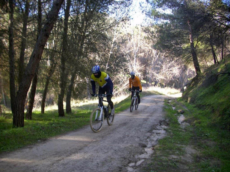 La sorpresa fue grata ya que descubrimos un pinar cerca de Carranque tras un largo descenso, lo malo es que luego había que subir (y mucho), todo ello bajo el sonido de los cartuchos de los tramperos rebotando en el camino... Cualquier día hay un disgusto.