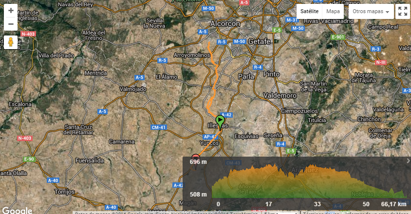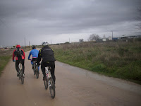 El camino de ida nos engañaba, con viento a favor y claros en el cielo, alejándonos cada vez más de Illescas. En Moraleja de Enmedio nos sorprendió algún chaparrón, pero ya veíamos nuestro destino... El desenlace fue el esperado, diluvio universal a la vuelta y calados hasta los huesos. Pero como dice un amigo: "Hay que salir sí o sí"