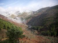 La ruta consistía en la subida al Nogal de Candeleda. Aunque el día no acompañaba a primera hora, y lo que verdaderamente apetecía era estar refugiado entre las mantas, la lluvia nos respeto y disfrutamos de una gran jornada de MTB.